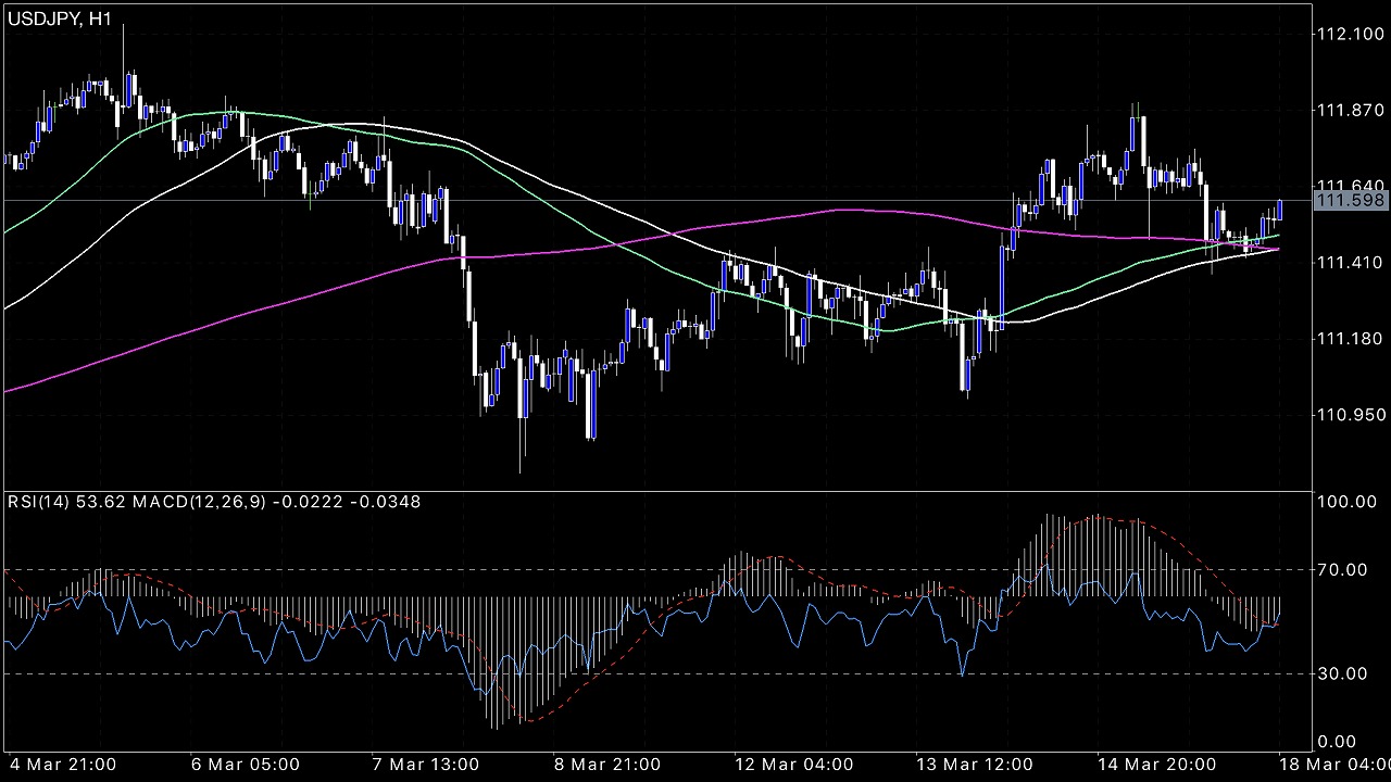 ドル円は111.60でロングでエントリー。ロスカットは111.30、プロフィットは111.90。