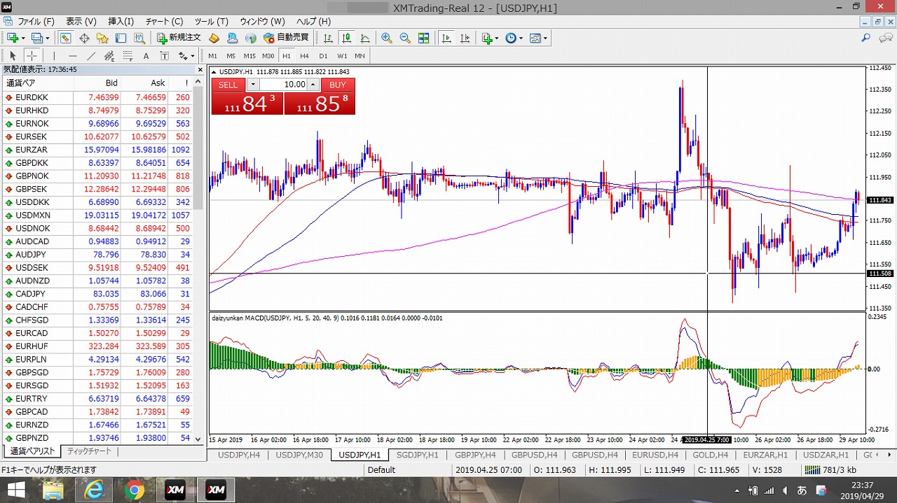 111.80でドル円エントリー。SLは111.50、TPは112.10。