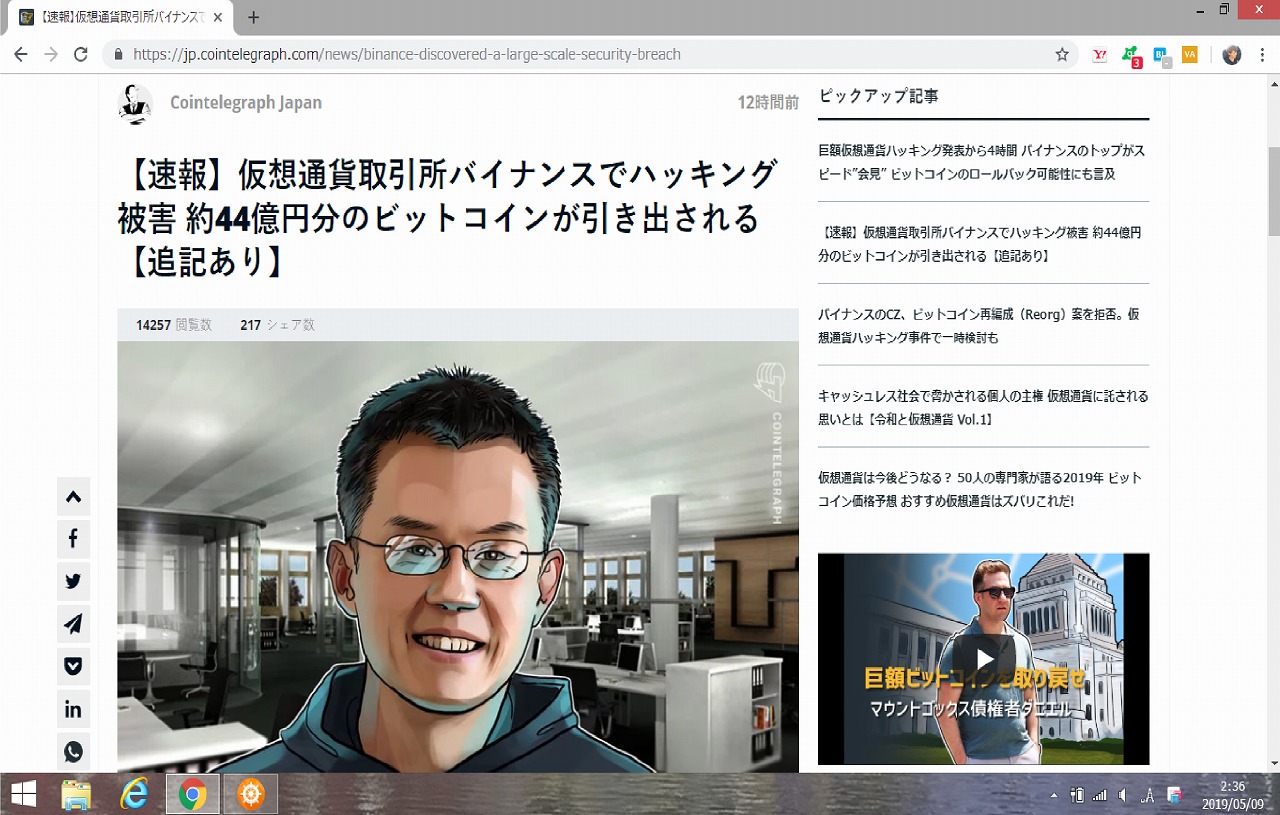 世界最大の仮想通貨取引所バイナンスがハッキングされたようですね。