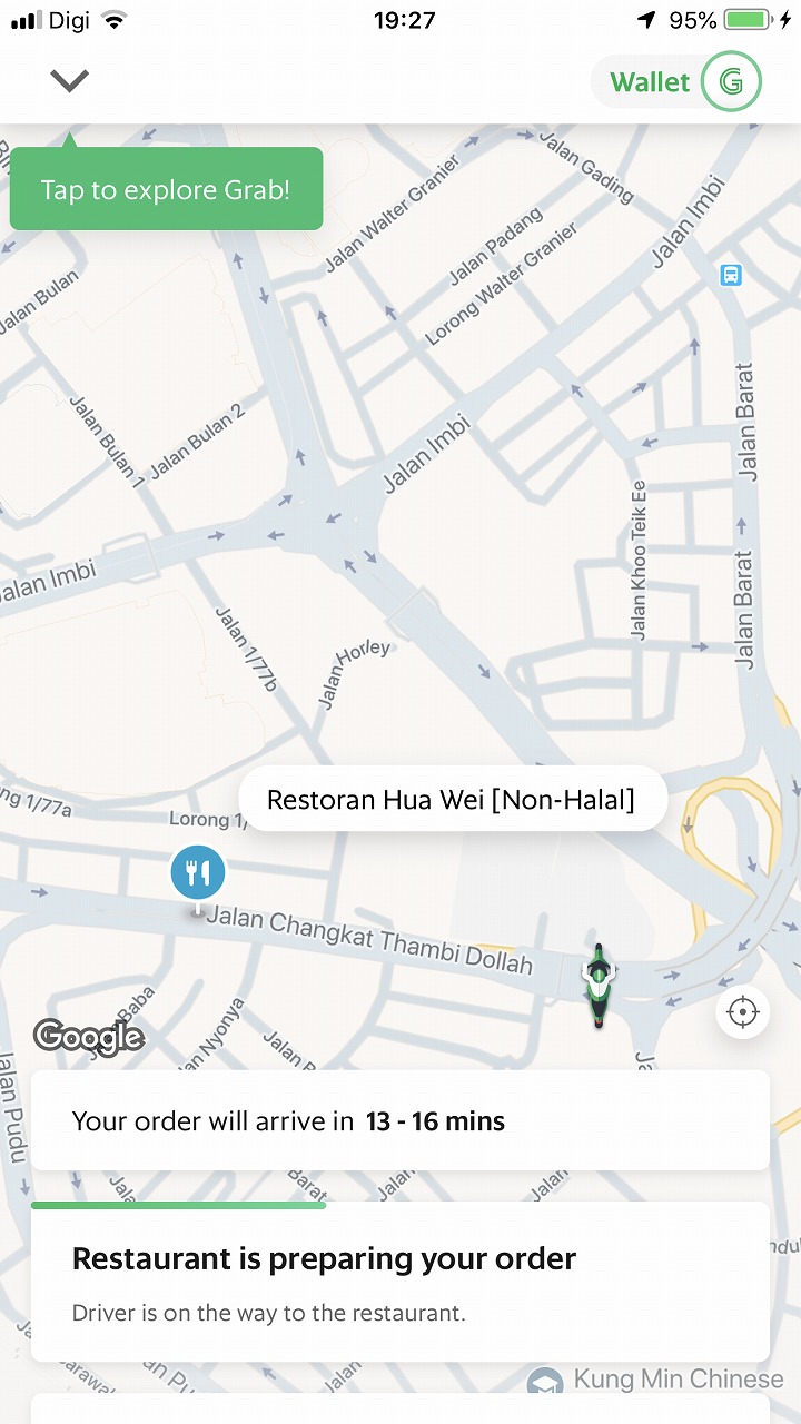 話は変わりますが、昨夜Grabフードを始めて使ってみました。注文してから30分ぐらいで届きましたよ。中華を2人分注文して27リンギ(700円くらい)でした。配達料込みでこの価格なのでかなりリーズナブルですね。味も美味しいですし。