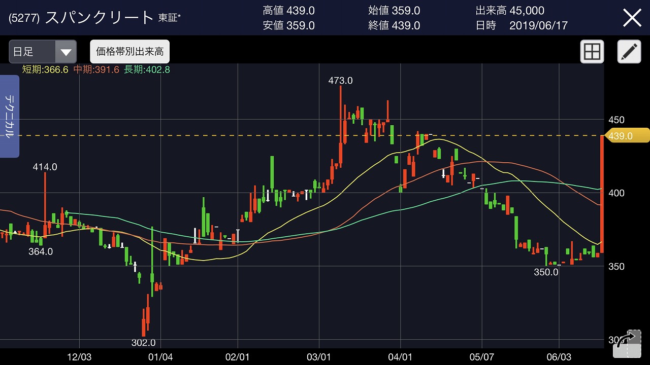 さらに先週からスパンクリート株を少々買っています。20%くらい上げてますね。そろそろ利食いしても良いのかと思っております。