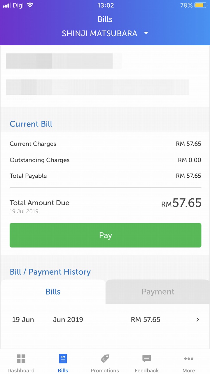 myTNBに多めにお金をいれておくことも可能なので、日本に一時帰国していてもアプリ内にリロードしたリンギットで支払いが出来ます。日本に滞在しながら公共料金の支払いが出来るのは良いですね。