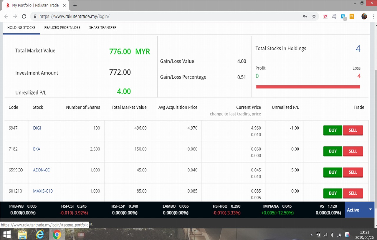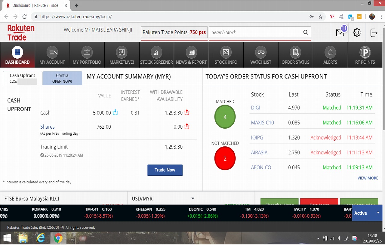 勢いよく成り行きで購入しても良いのですが、そういう時はいつも指値まで下がる。それが相場ですよ。株トレードするときはSBI証券を使っていたので、まだ慣れませんね。さっそく4リンギ儲かってるのは嬉しいですが。笑