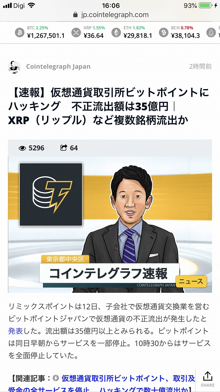 コインテレグラフ:https://jp.cointelegraph.com/news/bitpoint-lost-35billion-yen-by-hacking