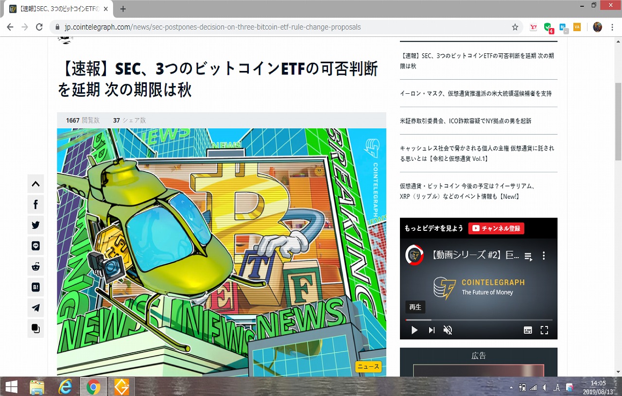 やはり延期になりましたね。SECは秋にETFの判断するとのことですが、暗号通貨市場が落ち着いていることを祈ります。