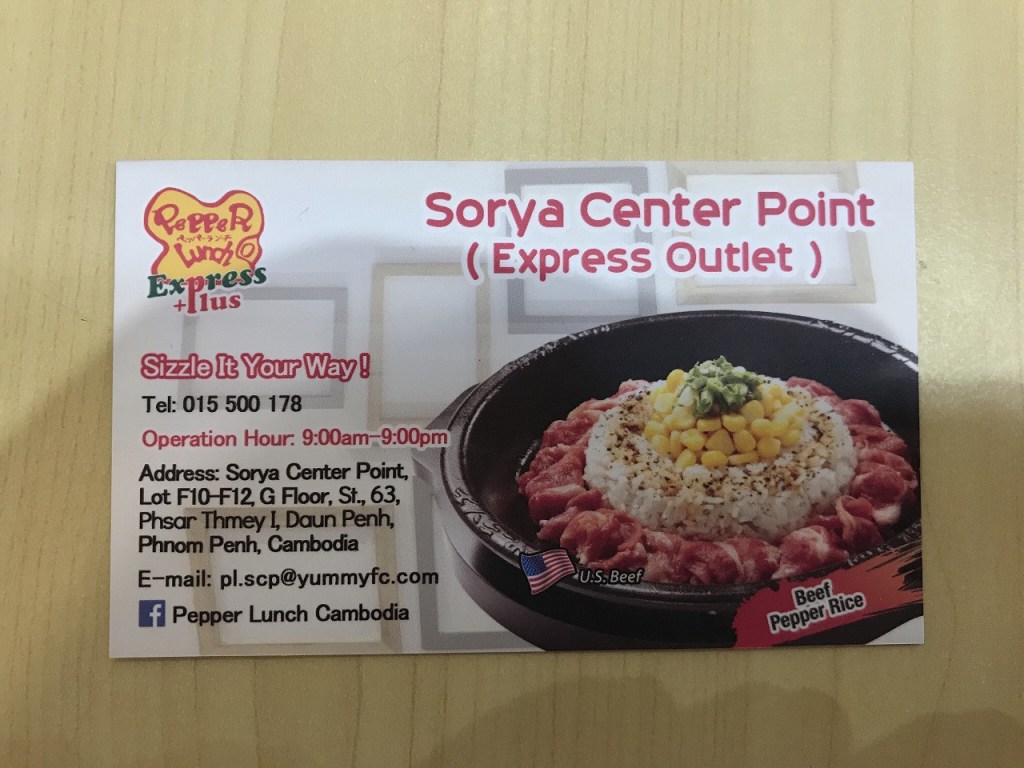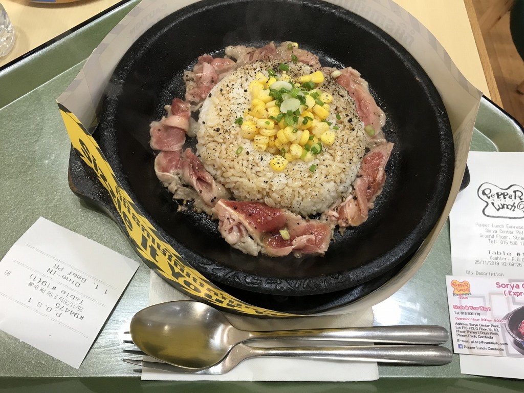 歩き彷徨った挙句、ペッパーランチがあったのでビーフペッパーライスを注文しました。このお店は日本の系列店だったんですね。知りませんでした。勝手にカンボジア料理だと思ってましたよ。
