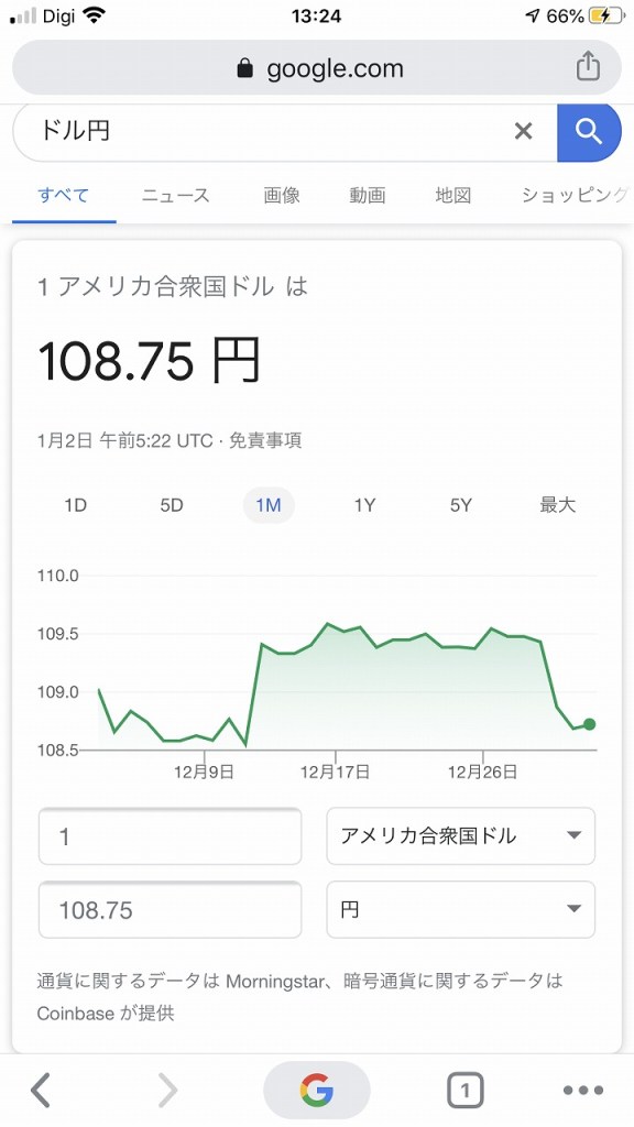 年明け早々からドル円が111円を付けるという話題がありました。ショートポジションを持っているトレーダーが多かったため、口座強制ロスカットの心配が相次いでいましたが、 どうやらバグ的なものだったらしいです。 現在は去年の終値から変化がなく108.70付近で推移しています。