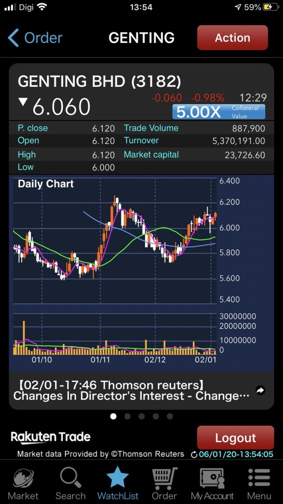 とりあえず、ゲンティン株を中途半端に100株だけ持ち続けていたので売却しました。100株でRM600(15700円)ですから、最近通っているアロママッサージを10回ほど受けられますね。100株残すより売却して健康に投資したほうがリターンが大きいはず。