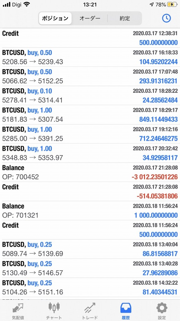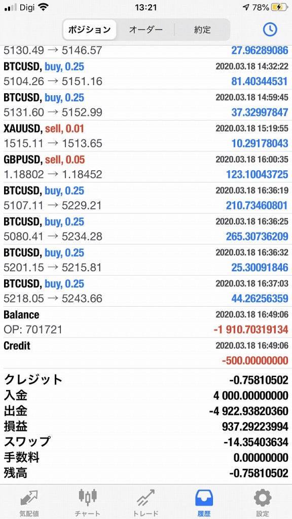 クリプトGTの入出金には、ビットコインやアルトコインが使用できるので新鮮さがあります。ですが、スワップは殆どマイナスなので長期トレードには向かないと思います。スプレッドもそんなに狭くはないのでスキャル向きでもないかもしれないですね。なので、一日から数日持つスイングトレードが丁度良いでしょう。
