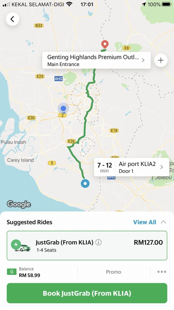・Grabタクシーで片道RM127(約3000円)