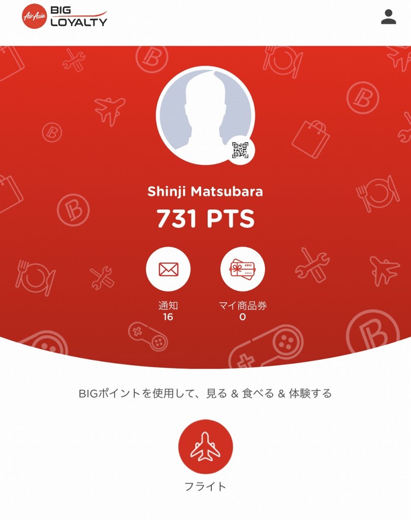 アプリ内でエアアジアBigPointと連携しておくことでポイントが貯まります。