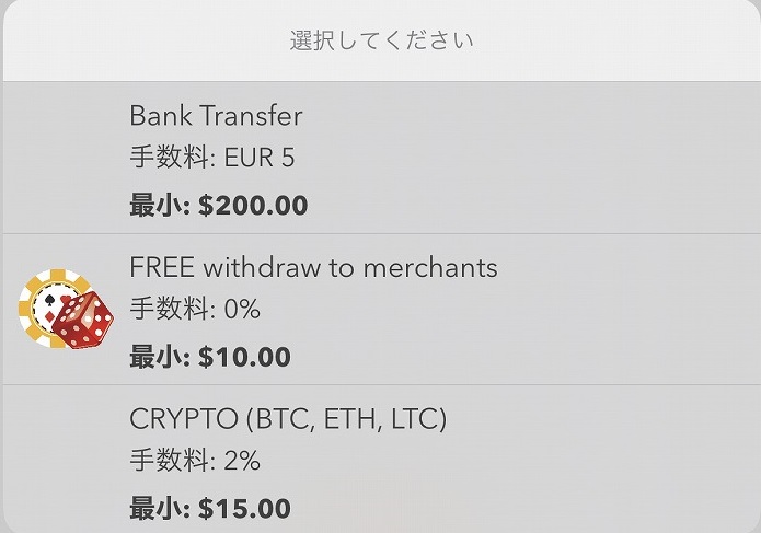 BTC(ビットコイン)で入出金すると手数料2%だけではなく、BTC送金手数料も発生するので高くつくので、送金手数料の安いXRPかLTCが好ましいです。