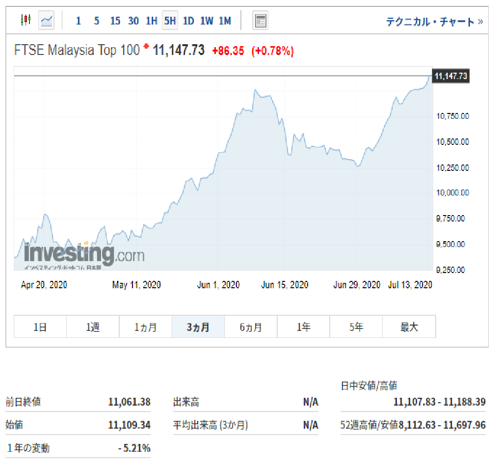 因みに、現在のマレーシアトップ100指数はこんな感じ。