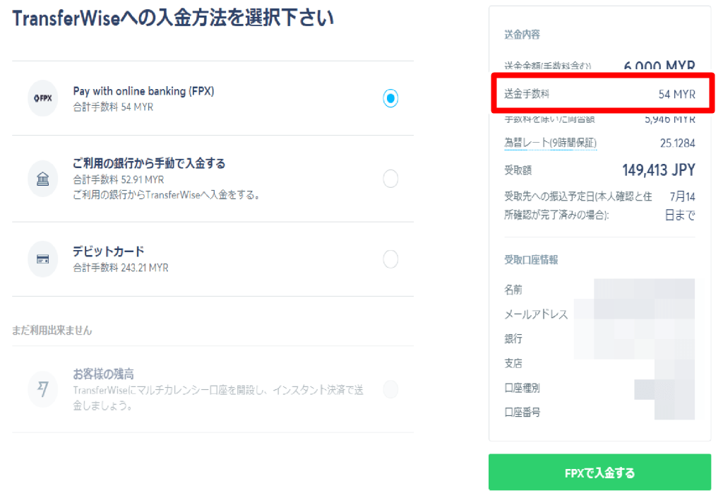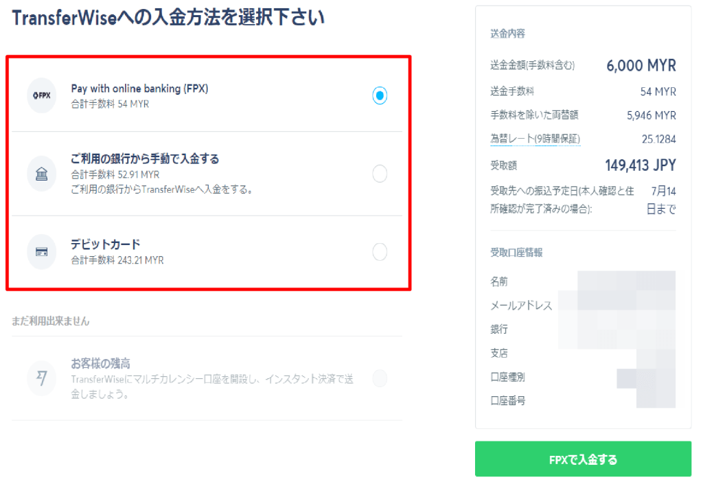 マレーシアから日本にRM6000(約150000円)をトランスファーワイズで送金してみました。
