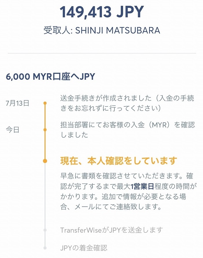 以前、日本からマレーシアへの送金で使ったことはあるのですが、今回はその逆ですね。