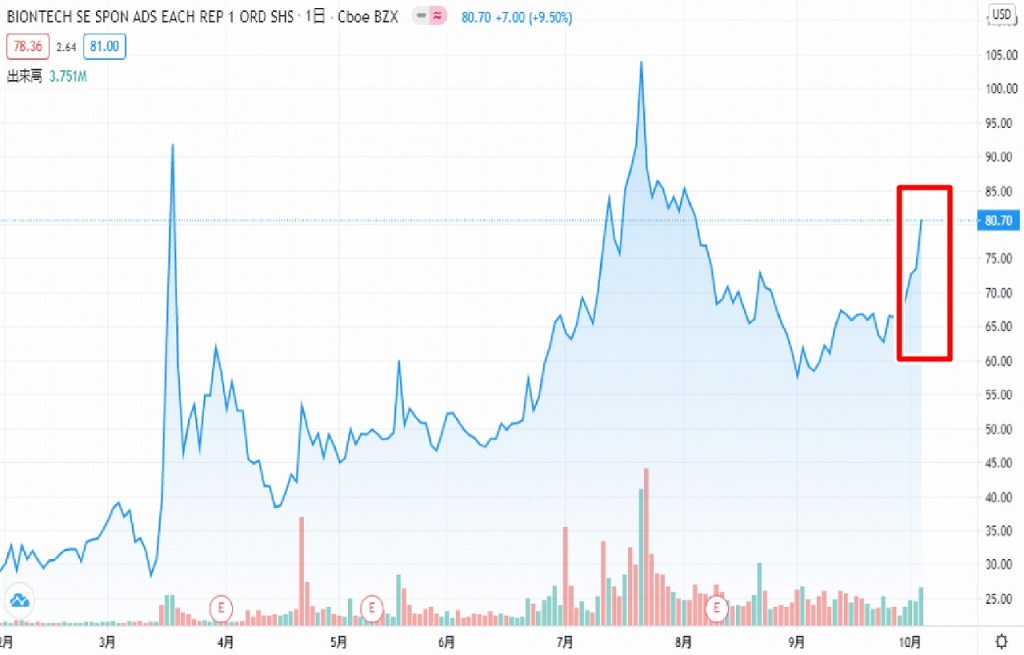 現在の株価<バイオンテック>