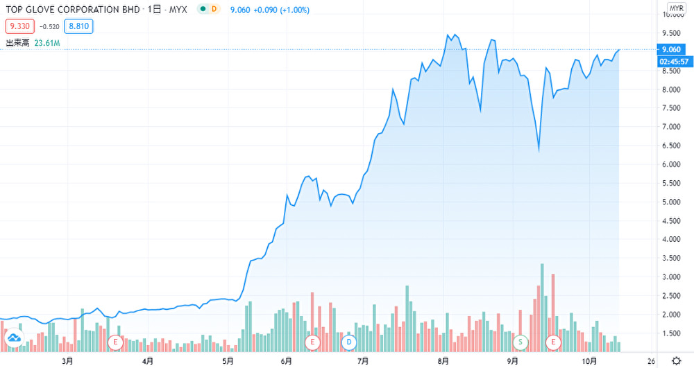 前回、マレーシア国内でMCO(活動制限令)が発表されたことで、医療グローブ全体が高騰した事実があります。今回はMCOより規制が緩いCMCO(条件付き活動制限令)になりますが、コロナ禍の懸念によりマレーシア医療グローブ銘柄は再度、投機マネーが集中する可能性は高いです。