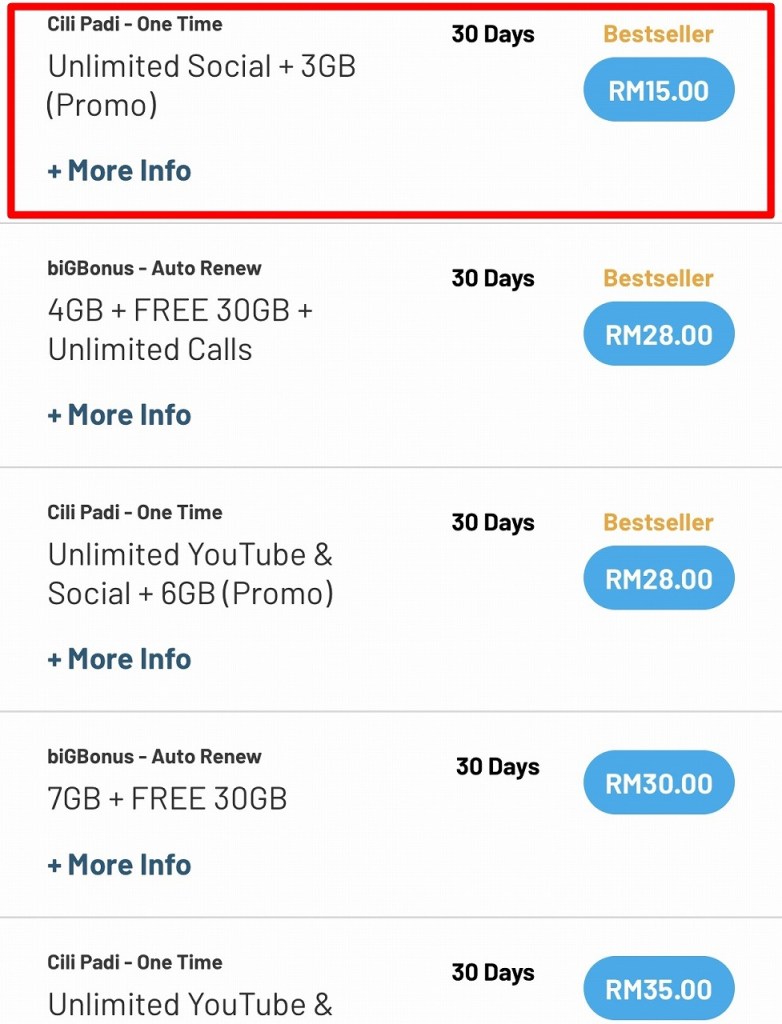 スマホ代に毎月RM35支払っていましたが、さらに安いプランがあったようです。
