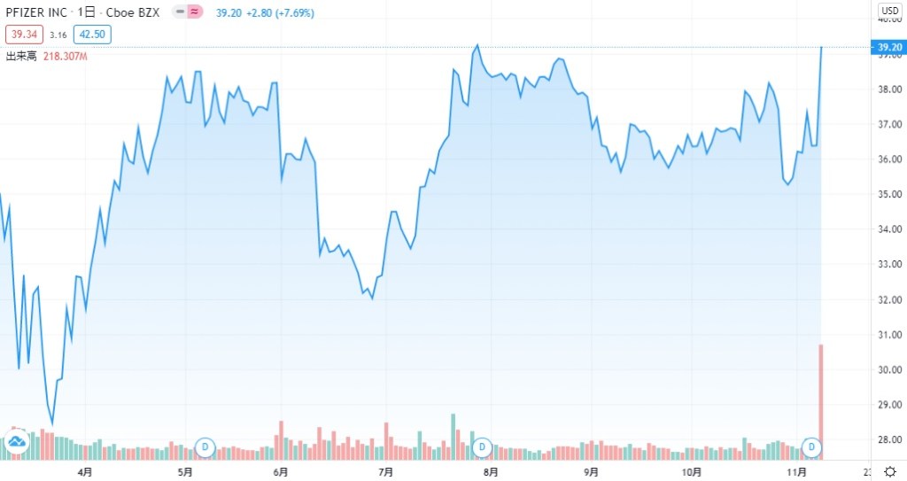 現在の株価/ファイザー/バイオンテック