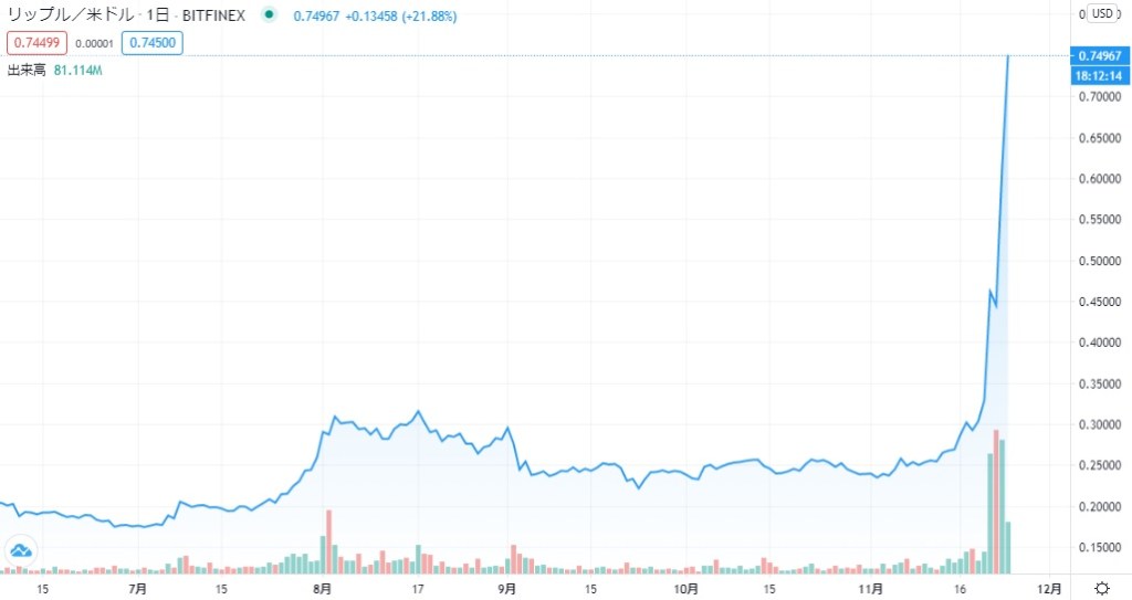 Sparkの権利確定日である12月12日付近までXRPは高騰し続ける可能性がありますので、現在XRPを保有されていない方は、今すぐ購入をお勧めします。