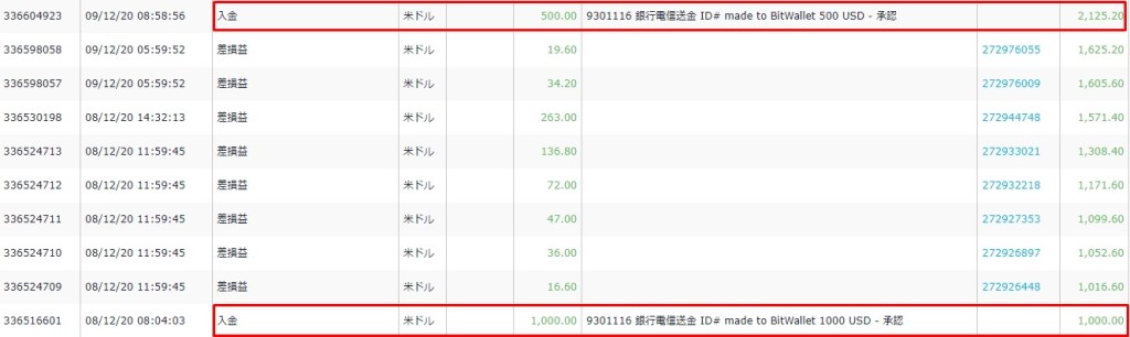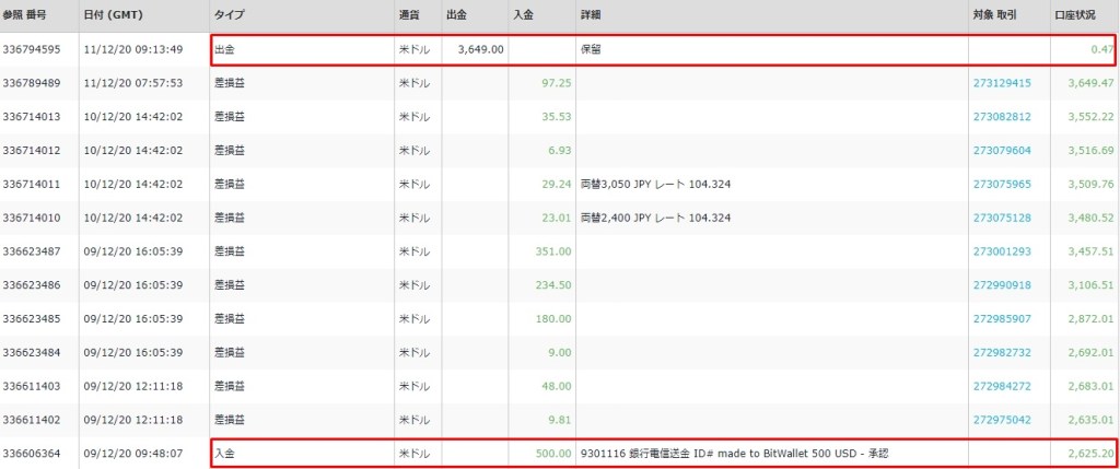 2,000ドル(約20万8,000円)の入金し、3,649ドル(約37万9,496円)を出金。