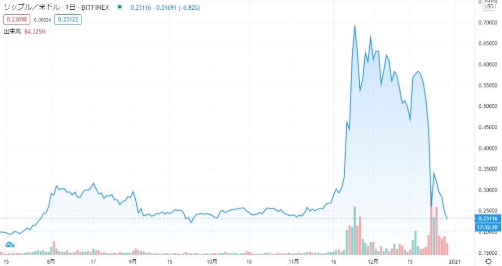 コインベースのXRP取引が一時停止になりました。この発表によりXRPは更に下落。