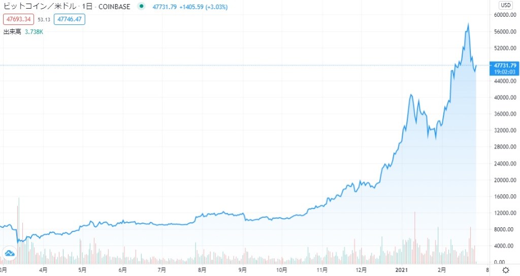 現在価格 USD 47731.79 前日比+3.03%