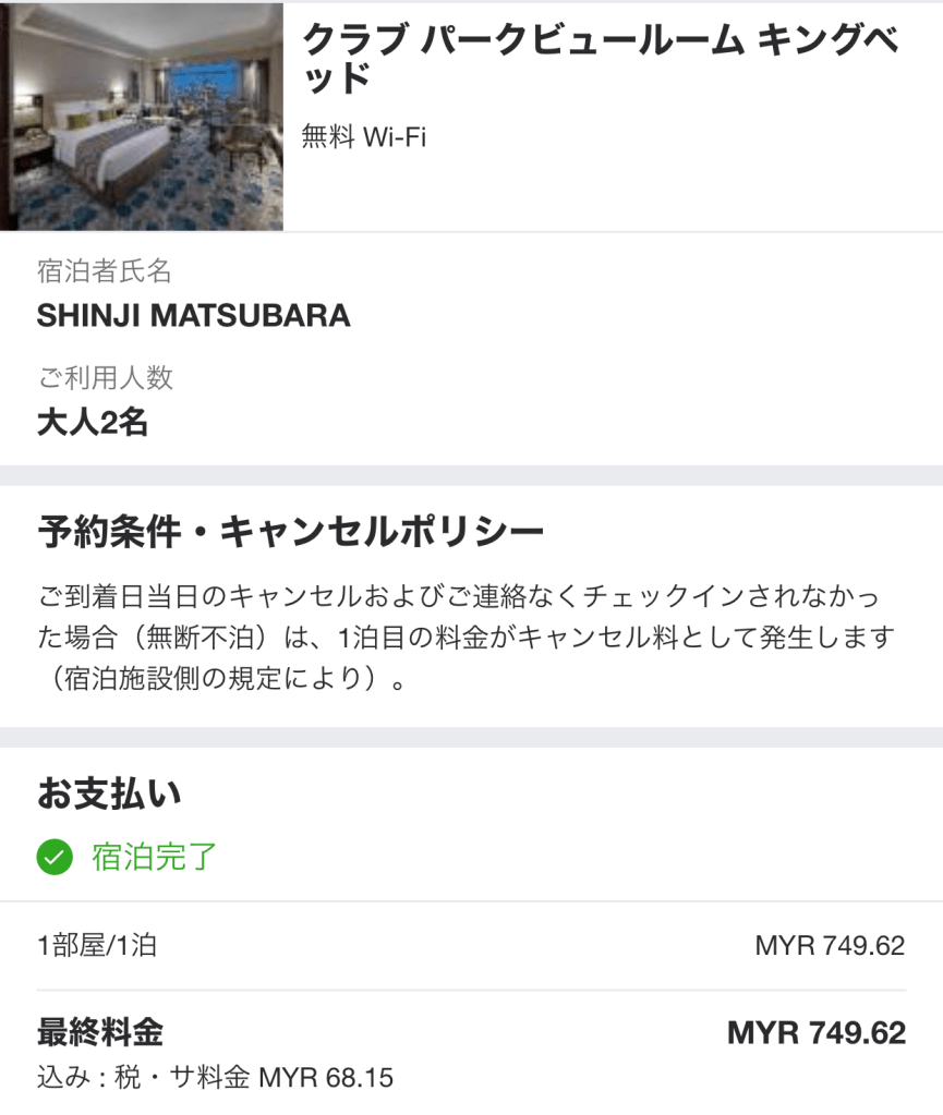 かなり安いですね。5つ星ホテルで2万円は安い。