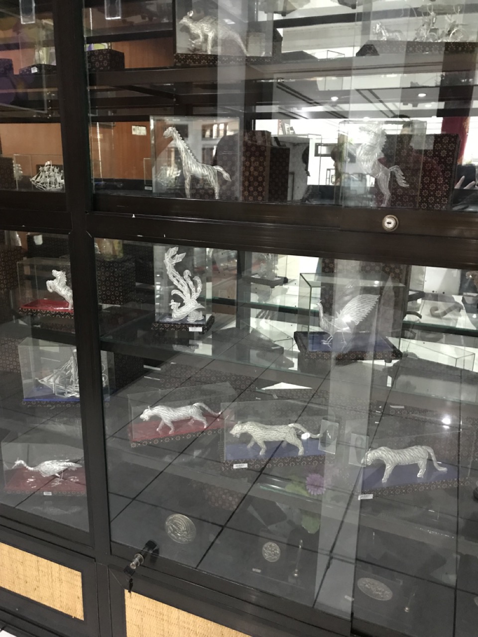 手作りのシルバーアクセサリーやシルバーの置物などが展示されていました。