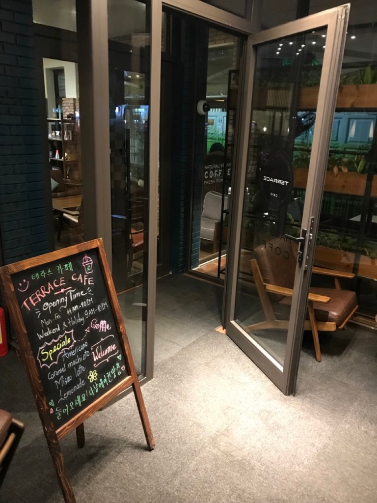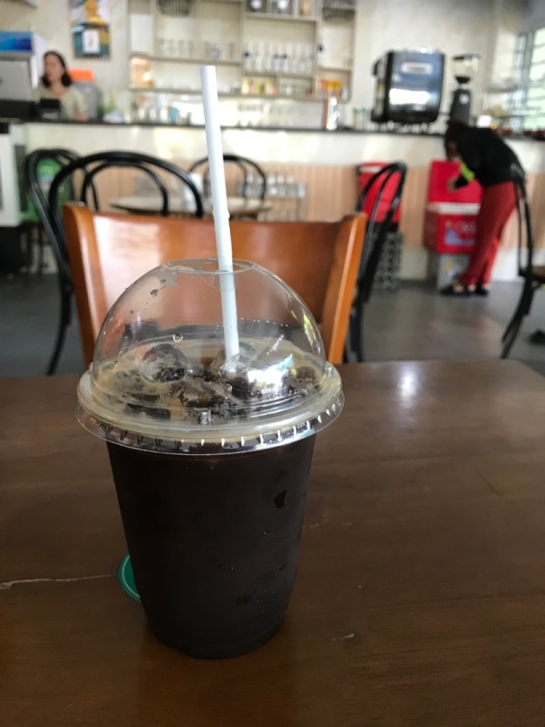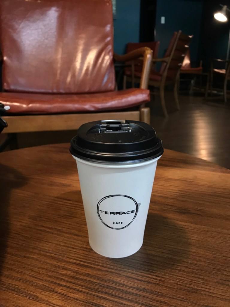 ミリオンゴッドゲーミングは平日13時開店。とりあえず1階のカフェでコーヒーを注文。
