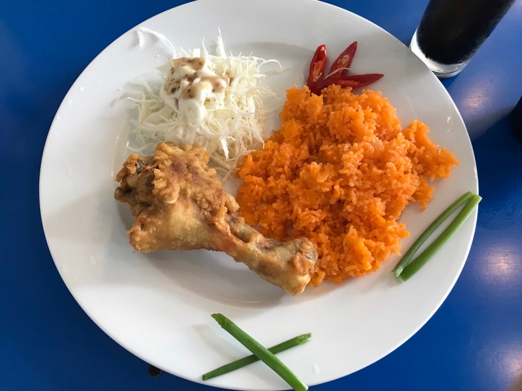 朝食は昨日のカフェでチキンライス。これも安くて美味しい。