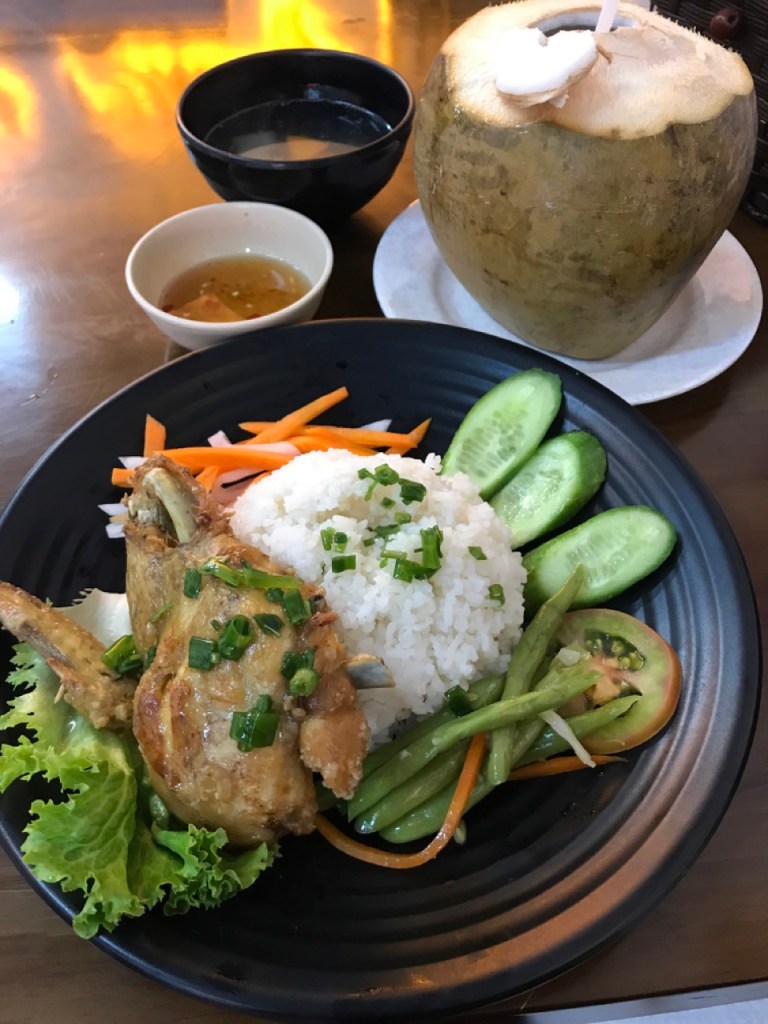 近くにあるCAU VANGというベトナム料理店で夕食。ビーフステーキセットを注文。ジューシーで美味しかったです。