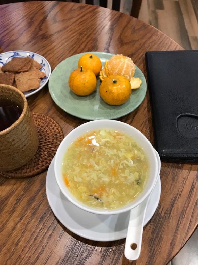施術後はお茶、お菓子、スープがでてきます。美味しいです。