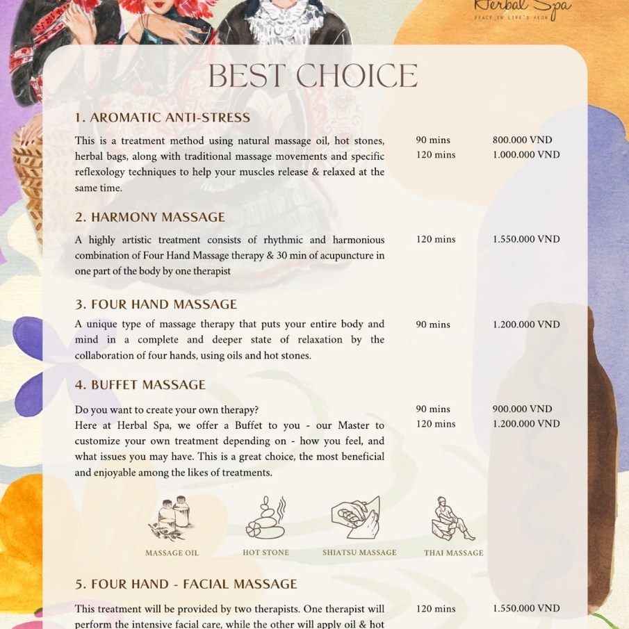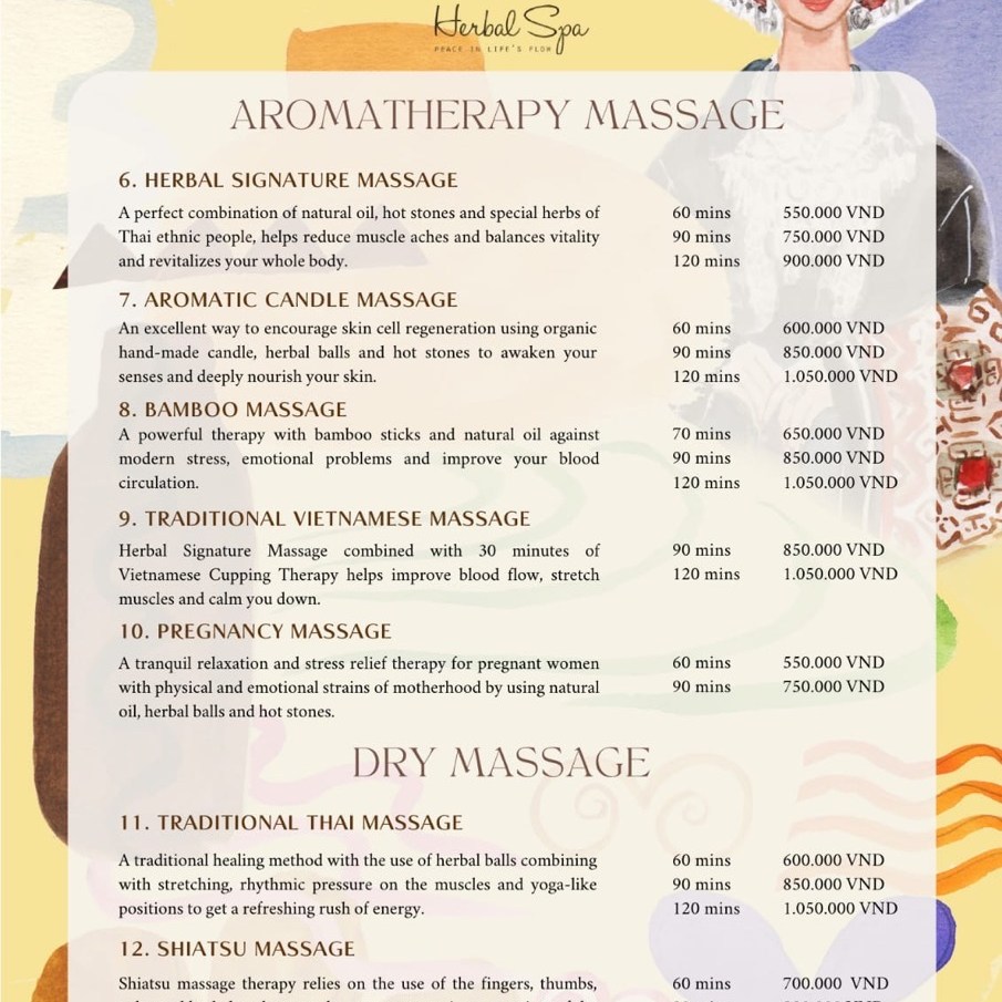 ハーバルシグネチャーマッサージ 90分 VND 760000(約4220円)を選択しました。日本人におすすめのマッサージ店ということで、スタッフの気遣いは素晴らしかったです。施術も素晴らしい。