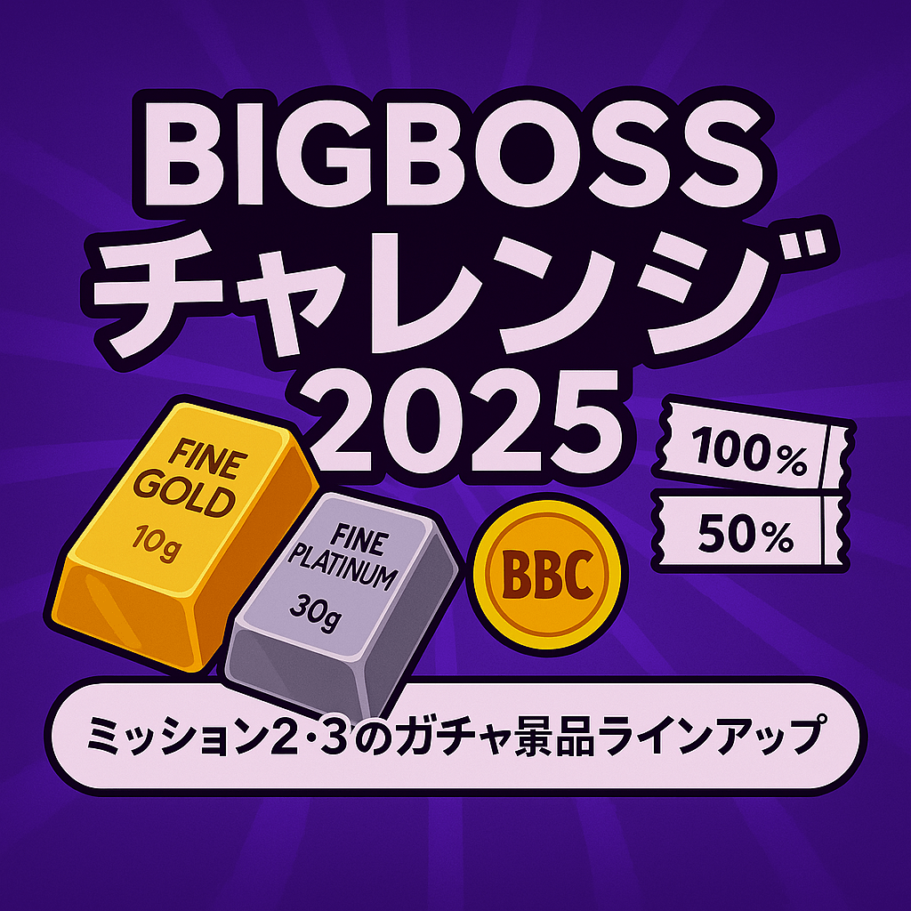 BigBossが開催する「BigBossチャレンジ2025」。今回は、ミッション2とミッション3で入手できるガチャ報酬の詳細を公式情報を元に解説。