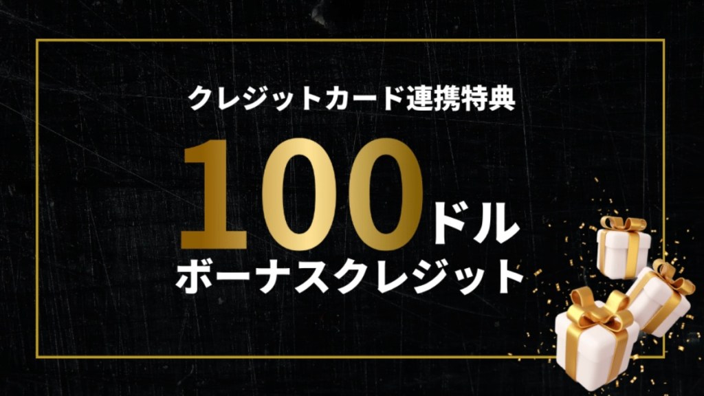 - 初回のクレジットカード入金に対し、$100分のボーナスを支給
